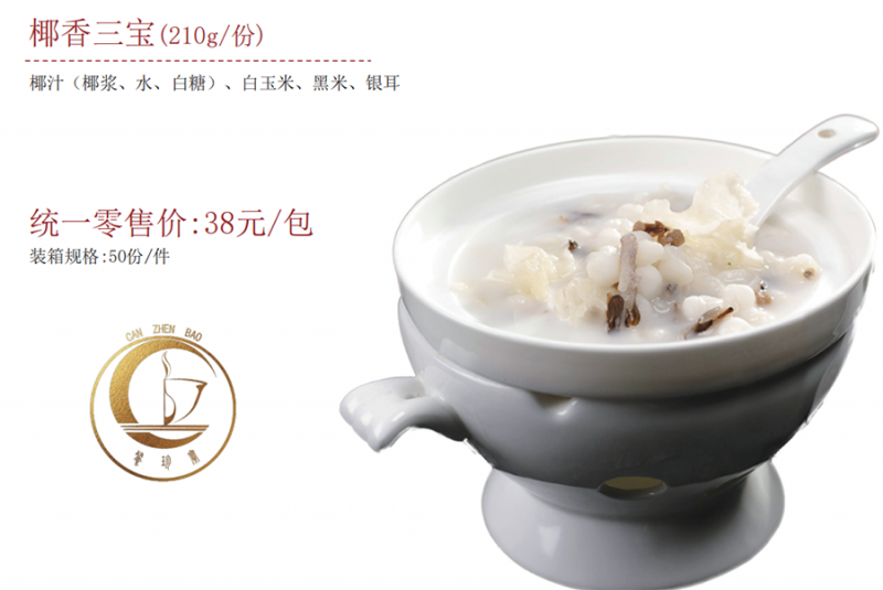 椰汁(椰漿、水、白糖)、白玉米、黑米、銀耳