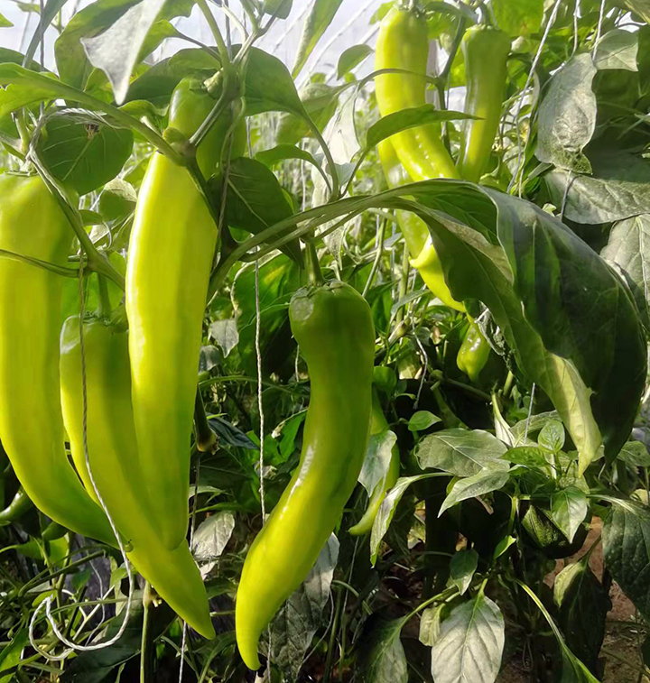 特性:淺綠皮辣椒為主,長度20-35cm,單果重150-300克,顏色油亮,口感好