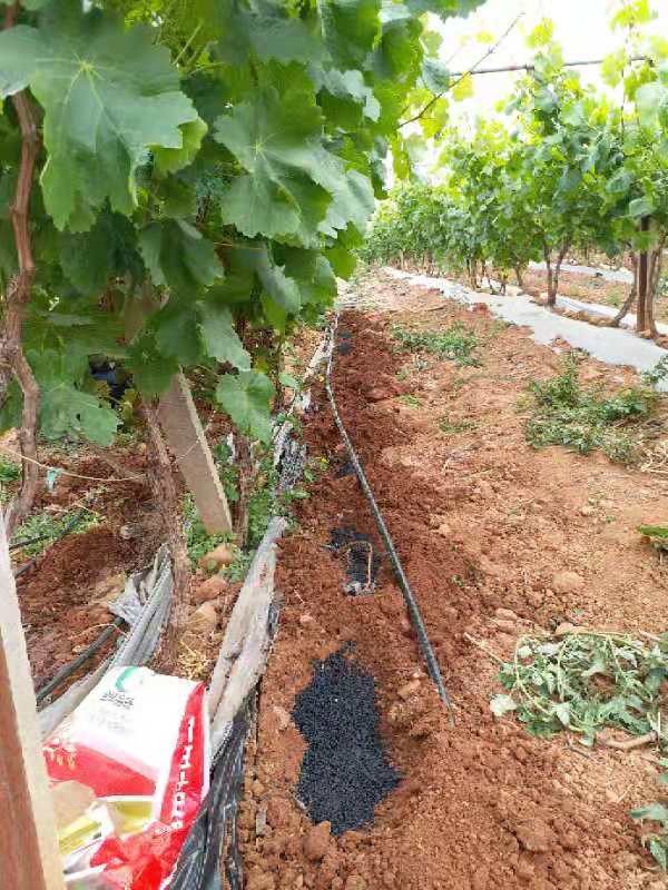 在春季至果實膨大前,每畝用豐田寶生物有機肥300400公斤(預計產(chǎn)量的10%-15%),溝施于根部兩側,埋土,壓實,澆透水即可;覆蓋黑色底膜,可促進葡萄提前結果和成熟。果穗落花后澆水時,每畝隨水澆入1公斤慧動力,促進生長和提高抗病性。一般1015天澆一次水。