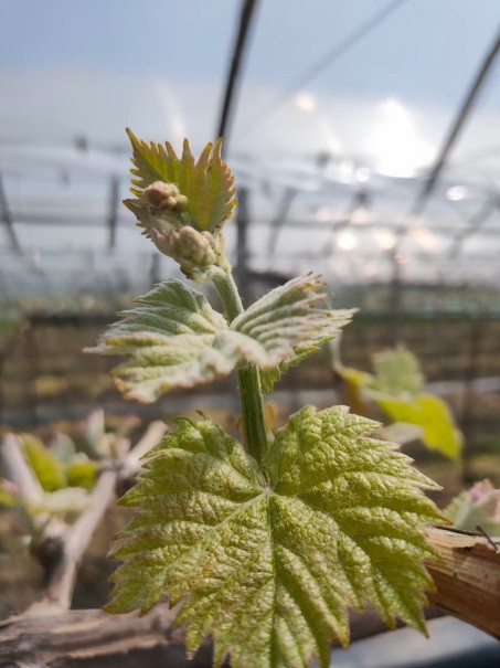 春季幼苗移栽后可快速生根發(fā)芽,幼芽健壯,葉片肥厚,主莖生長快,粗壯。至秋末落葉前,浙江杭州市富陽區(qū)和山東萊州市的葡萄園,植株都已達成齡期,根系發(fā)達,莖粗2.5-3.0厘米,主莖長達8米以上,具備正常掛果的條件。