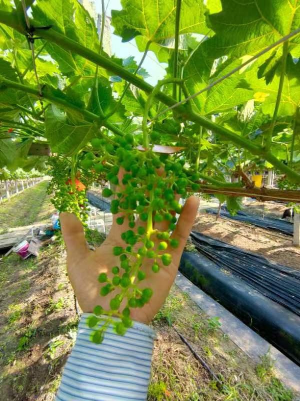 陽光玫瑰葡萄移栽后第二年,一般施化肥和普通有機肥的還果園處在初結果期,還是以促進營養(yǎng)生長,使枝條增粗和主枝繼續(xù)延長,為進入結果期構建成齡樹形。施用豐田寶生物有機肥的果園,葡萄提前1年進入結果期,畝產(chǎn)可達1500公斤以上,且產(chǎn)品優(yōu)質。葡萄主干繼續(xù)生長,植株健壯,實現(xiàn)第一年建園,第二年盈利的目標。