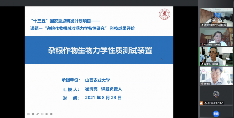 2021年8月,受山西農(nóng)業(yè)大學(xué)委托,中華全國(guó)供銷(xiāo)合作總社科技推廣中心作為供銷(xiāo)合作系統(tǒng)內(nèi)唯一受總社委托開(kāi)展科技成果管理相關(guān)工作的機(jī)構(gòu),按照科技部《科技成果評(píng)價(jià)辦法》,本著“科學(xué)、獨(dú)立、客觀、公正”的原則,組織七位相關(guān)領(lǐng)域?qū)<乙浴熬€上+線下”形式對(duì)“雜糧作物生物力學(xué)性質(zhì)測(cè)試裝置”成果進(jìn)行了科技成果評(píng)價(jià)。