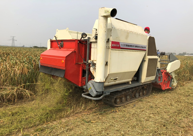 專家組經(jīng)評議認為,該成果針對谷穗纏繞難分禾、谷碼主莖分離難、易糊篩等問題,開發(fā)了防纏減損收獲臺、適應(yīng)單稈單穗頭三級分支小籽粒作物的脫粒與清選裝置,設(shè)計了紋齒結(jié)合的防糊篩柔性縱軸流脫粒滾筒、風量風速可調(diào)的離心風機與三段雙層編織篩,解決了不同成熟期谷子收獲作業(yè)的脫粒與清選技術(shù)難題。經(jīng)第三方機構(gòu)檢測,主要性能指標(喂入量:3.7