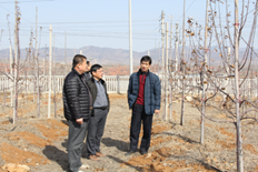 第二步:在果樹(shù)定植時(shí),在離地55cm處(果樹(shù)定植時(shí)的高度是高于55的?(是的)),在行向上使相鄰兩株果樹(shù)從東西兩側(cè)離地55cm處的第一道橫拉鐵絲處交替通過(guò);