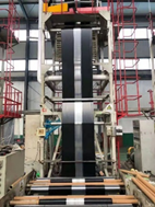 探明了加工條件對PBAT、PLA等生物降解聚酯地膜強(qiáng)度、韌性、耐候性的影響規(guī)律,研發(fā)了專用螺桿、成型模具、保溫穩(wěn)泡裝置,創(chuàng)新設(shè)計了地膜機(jī)組全自動化收卷裝置,研制成功年產(chǎn)能超過千噸的三層共擠生物降解地膜專用吹塑機(jī)組,制品厚度0.005-0.020mm可調(diào),加工效率顯著提高,0.006mm厚度地膜單機(jī)年產(chǎn)能達(dá)到1069噸,節(jié)能15%。