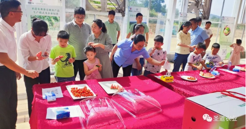 2023918日,圣道農(nóng)業(yè)產(chǎn)業(yè)集團(tuán)和山東生態(tài)產(chǎn)品交易中心、山東華邦集團(tuán)共同舉辦了棗莊圣道智慧農(nóng)業(yè)產(chǎn)業(yè)園準(zhǔn)有機(jī)果蔬品鑒會。分別在棗莊市山亭區(qū)山東生態(tài)產(chǎn)品交易中心、藍(lán)海大飯店和棗莊圣道智慧農(nóng)業(yè)產(chǎn)業(yè)園內(nèi)設(shè)立三個品鑒區(qū),提供了本園區(qū)種植的準(zhǔn)有機(jī)果蔬紅珍珠西瓜、玉女黃瓜和櫻桃西紅柿等供游客品鑒和購買。