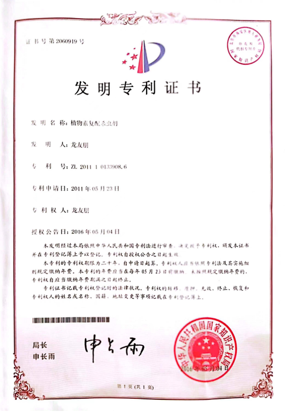 一種生物農(nóng)藥制劑,一種植物素有機(jī)復(fù)配殺蟲(chóng)制劑。它主要是解決目前使用的化學(xué)農(nóng)藥易對(duì)環(huán)境造成污染,易對(duì)人畜造成危害,而現(xiàn)有生物農(nóng)藥效果差或生產(chǎn)工藝復(fù)雜等技術(shù)問(wèn)題。其技術(shù)方案要點(diǎn)是:將苦楝素、苦參堿等按特定重量比配制而成。它是以植物原料提煉的組份復(fù)配而成,是一種廣譜、高效、低毒、易降解、無(wú)殘留的殺蟲(chóng)劑且沒(méi)有抗藥性的環(huán)保農(nóng)藥,可防治菜青蟲(chóng)、小菜蛾、菜螟、蚜蟲(chóng)、斜紋夜蛾、茶葉毛蟲(chóng)、菜蟻、稻飛虱、稻卷螟、鉆心蟲(chóng)等,而且生產(chǎn)工藝簡(jiǎn)便、生產(chǎn)成本較低,具有很好的市場(chǎng)前景。