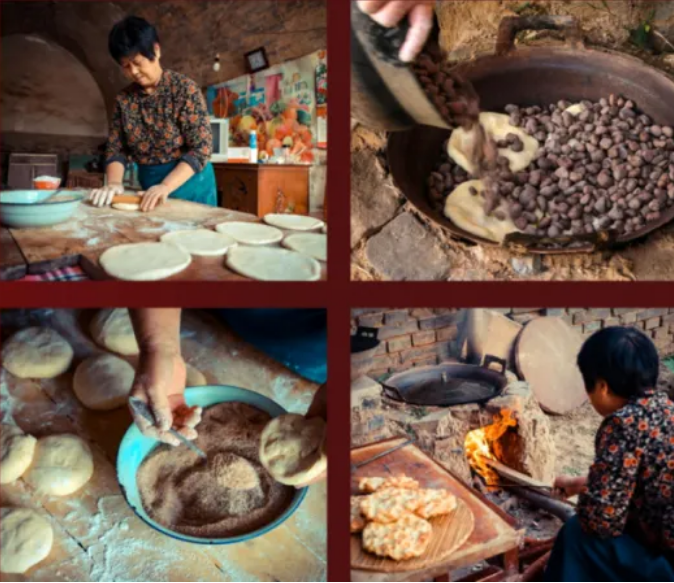 更特別的是,它的風(fēng)味里還裹著民俗的溫度。中秋祭月時,母親會在餅里包核桃碎,說“吃了能聰明”;孩子滿月,姥姥要送“囍字餅”,餅邊捏出花邊寓意“圓滿”;家人出門,行囊里總會塞幾張,“路上餓了墊墊,咬一口就像在家一樣”。