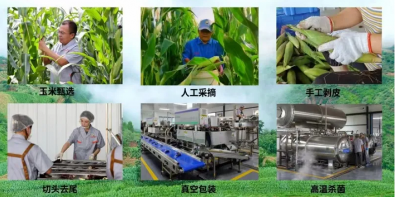 其一,品種優(yōu)選與地理適配,選用山西農(nóng)業(yè)大學(xué)(山西農(nóng)科院)研發(fā)的彩甜糯,黑甜糯等玉米品種,這些品種具備生育期短(3月下旬播種,生長(zhǎng)周期較短)、抗病性強(qiáng)、直鏈淀粉含量低,果皮薄口感軟糯香甜等特點(diǎn)。同時(shí)通過施有機(jī)肥料,改善土壤活性土壤養(yǎng)分,提升糯玉米的口感。其二,排期種植與水肥一體,“米小力”糯玉米公司已成功流轉(zhuǎn)并有效利用達(dá)1118畝優(yōu)質(zhì)農(nóng)田,自310日開始排期種植,710結(jié)束。期間每隔7天種植一批玉米,實(shí)現(xiàn)錯(cuò)峰收獲,保持了最佳口感。其三,綠色種植與資源循環(huán),全面采用病蟲害綠色防控,集成物理防蟲與生物防治技術(shù),減少農(nóng)藥使用,符合綠色食品A級(jí)標(biāo)準(zhǔn)。在采摘完畢后,秸稈實(shí)行綜合利用,采收后秸稈加工為青貯飼料并提供給附近養(yǎng)殖場(chǎng),實(shí)現(xiàn)“種植一加工一養(yǎng)殖”資源循環(huán),在保護(hù)環(huán)境的基礎(chǔ)上充分提升了資源利用率。其四,生產(chǎn)加工一體化,“米小力”糯玉米建立了完整全面的生產(chǎn)加工一體化體系,首先在原料采收上采用乳熟初期(授粉后25d28d)的新鮮糯玉米青穗,含水量70%75%,外觀無(wú)病蟲斑的進(jìn)行播種;成熟后采用人工采摘與手動(dòng)剝皮以保證玉米的完整與美味新鮮;然后將精心選擇和切頭去尾的精選玉米進(jìn)行熱加工處理,通過燙漂或蒸制殺滅微生物、鈍化酶活性,保持口感與營(yíng)養(yǎng);熱加工后迅速冷卻并瀝干水分,防止過度軟化。加工完成后經(jīng)預(yù)冷后進(jìn)行快速凍結(jié),鎖住新鮮度;隨后采用真空包裝,包裝后的產(chǎn)品在低溫環(huán)境下凍藏,延長(zhǎng)保質(zhì)期,確保品質(zhì)穩(wěn)定。最后,再根據(jù)市場(chǎng)需求進(jìn)行配送和分揀包裝,采用HG特制耐高溫保鮮技術(shù)封裝, 玉米在真空環(huán)境下被完好鎖定新鮮度,有效抵抗氧化作用,確保其色澤持久鮮亮奪目。