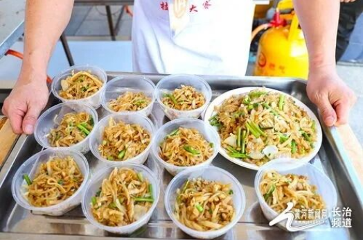 長子炒餅有著深厚的歷史底蘊,現(xiàn)流傳至?xí)x、冀、魯、豫各地。它選料精細(xì),制作工序繁雜,需歷經(jīng)48道工序,以面粉烙餅切絲,搭配肉絲、蒜苔、粉條,加雞湯與油、鹽、醬油等佐料精心烹炒。成品色澤金黃、質(zhì)地柔軟、爽口不膩,食用時搭配醋和蒜,別具一番風(fēng)味。