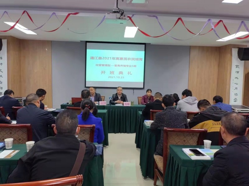 為響應(yīng)國家關(guān)于民生工程高素質(zhì)農(nóng)民培訓(xùn)的工作部署和要求,全面推進鄉(xiāng)村振興,加快推動鄉(xiāng)村人才隊伍建設(shè),10月25日,通江縣2021年高素質(zhì)農(nóng)民培育畜禽養(yǎng)殖專業(yè)第五期培訓(xùn)班在園頂花海農(nóng)民田間學(xué)校順利開班??h農(nóng)業(yè)農(nóng)村局副局長茍曉、縣農(nóng)業(yè)農(nóng)村局科教股股長蹇玲君、縣農(nóng)廣校校長趙國出席開班典禮,來自全縣各鄉(xiāng)鎮(zhèn)的45名高素質(zhì)農(nóng)民參加本次培訓(xùn)。