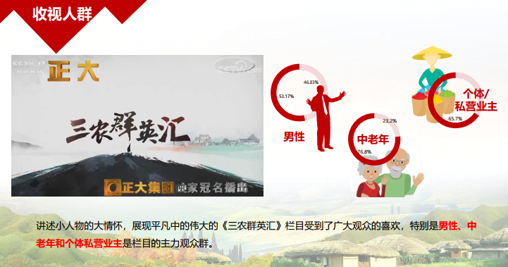 《三農(nóng)群英匯》欄目集中關(guān)注在“三農(nóng)”領(lǐng)域默默奉獻(xiàn)、執(zhí)著堅(jiān)守、開(kāi)拓進(jìn)取的耕耘者、新農(nóng)人,展現(xiàn)他們?cè)谯`行鄉(xiāng)村振興戰(zhàn)略的道路上,面對(duì)重重困難和挑戰(zhàn),勇于擔(dān)當(dāng)、攻堅(jiān)克難、砥礪前行的精彩故事。
