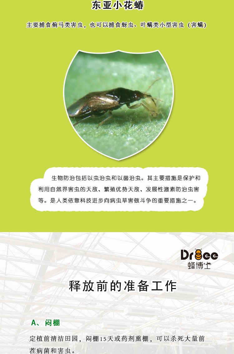 首頁?產(chǎn)品?種植栽培 ? 病蟲災(zāi)害防治?蜂博士生物防治 東亞小花蝽