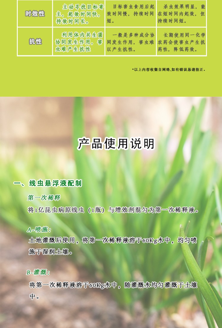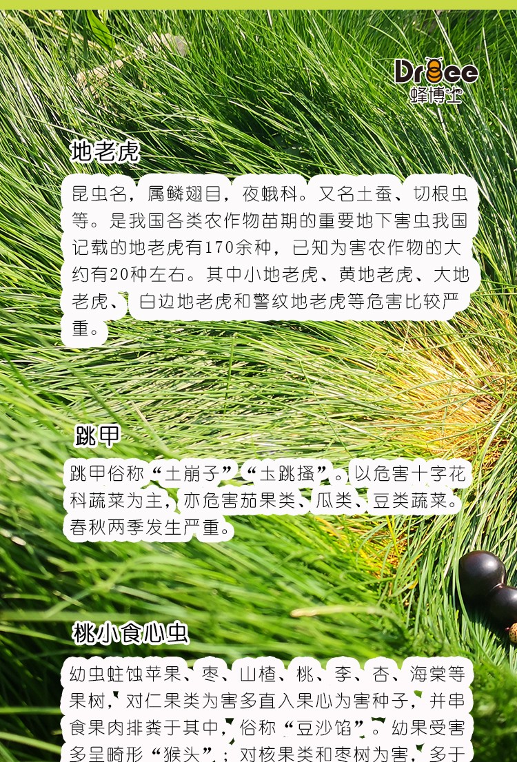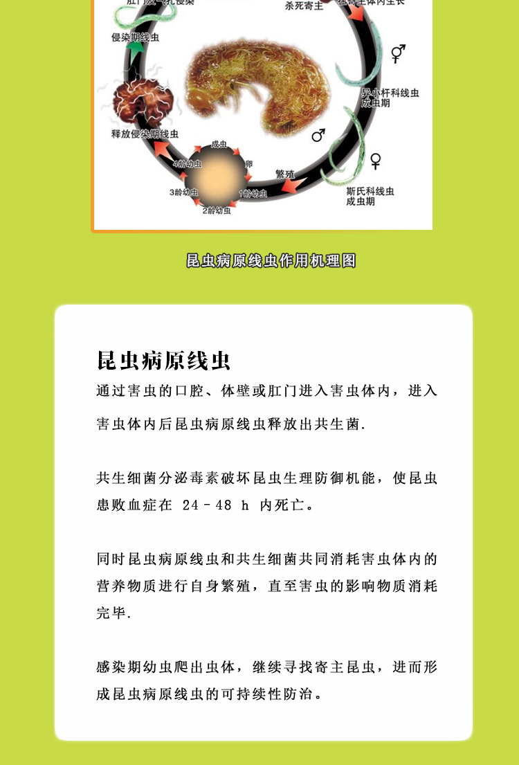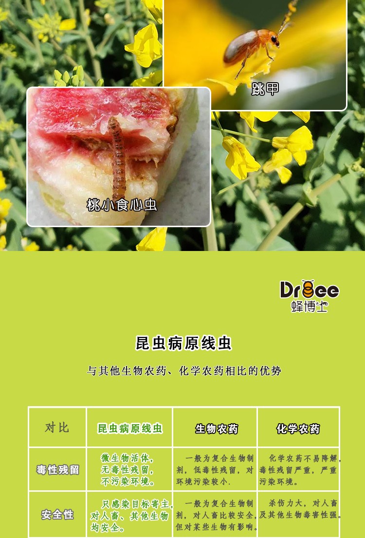 - 作用:生物防治跳甲、地老虎、桃小食心蟲